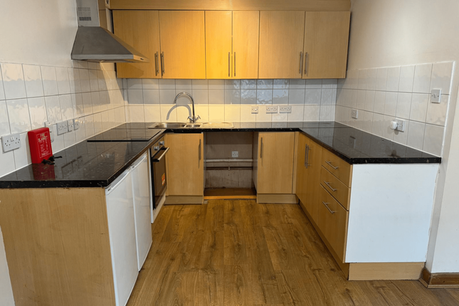 The apartment features a spacious living area with large windows that allow plenty of natural light to flow through, creating a warm and inviting atmosphere. The separate kitchen is well laid out and provides ample cupboard and worktop space, perfect for day-to-day cooking.