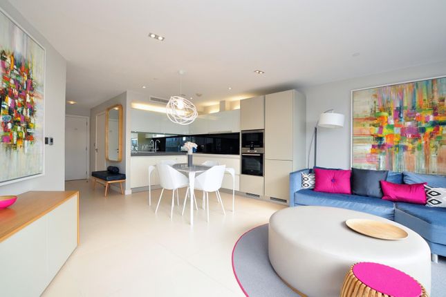 Benefits from a master bedroom ensuite and a family bathroom, fully furnished, generously spacious open plan kitchen with high spec appliances leading to a living room with a private balcony. The apartment also has wooden flooring and offers plenty of space for storage.
