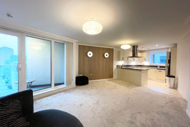 Presented to a high standard throughout, the property features a fully fitted kitchen with built-in appliances, wood flooring, two double bedrooms with built-in wardrobes (one with en-suite), and a contemporary family bathroom. The flat also benefits from a private balcony and lift access.