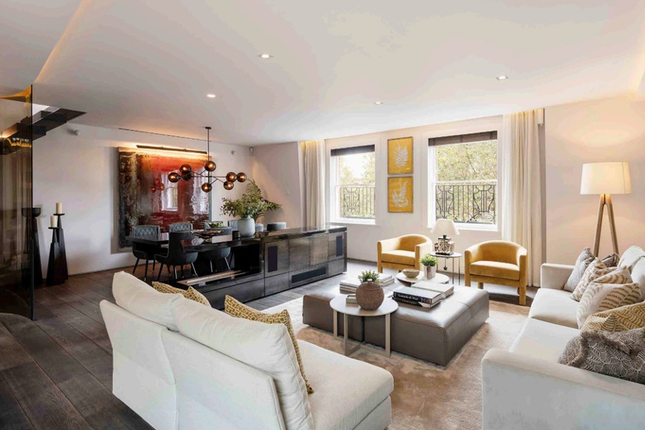The accommodation comprises a grand reception room ideal for entertaining, a bespoke Bulthaup kitchen with integrated Gaggenau appliances, and a separate dining area. The principal bedroom suite features a dressing room and luxurious marble en suite bathroom with freestanding bath and walk-in shower. Two further double bedrooms each benefit from en suite bathrooms. A private decked terrace provides rare outdoor space in this prime central London location.