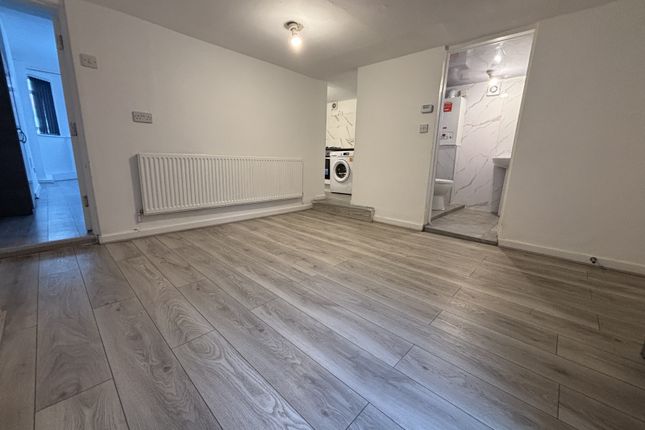 A first floor studio apartment. One open plan room with kitchen and shower room within the studio space.