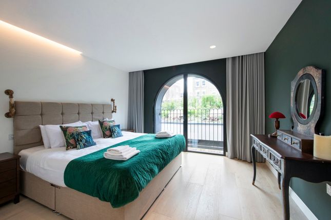 Arranged over two floors, the groud level hosts a bright and airy open-plan living and dining area. The bespoke kitchen features sleek cabinetry and premium Miele appliances, making it as functional as it is stylish ideal for both everyday use and entertaining. The upper floor comprises two spacious double bedrooms, each with its own chic en suite bathroom and built-in wardrobes, along with a private patio offering a peaceful spot for morning coffee or evening unwinding. Additional benefits include a guest W/C and a discreet utility area.