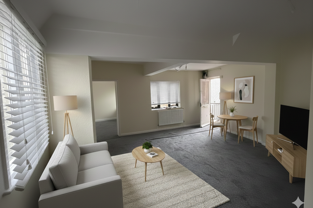 The property comprises a lounge/kitchen area, one bedroom, and a bathroom.