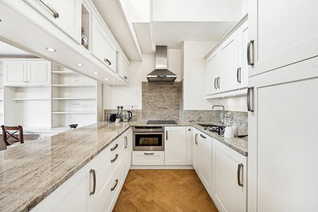 The apartment boasts a bright open plan kitchen and living area, two bedrooms with en suite bathrooms and separate WC. The fully fitted Metris Kitchen is complete with Miele appliances including an integrated dishwasher, washer/dryer, full height fridge freezer, oven, hob and integrated extractor fan as well as a wine cooler. The bathrooms comprise of full bathroom suites with underfloor heating whilst the bedrooms boast bespoke mirrored wardrobes and automatic lighting. Further benefits of the apartment include a Crestron audio visual system, a digital video door entry system and pre-wiring for Sky + TV.