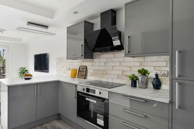 This apartment features a bright open-plan living and kitchen space, a double bedroom with ample storage space and a bathroom.