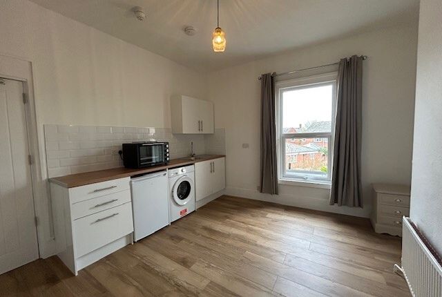 Refurbished first floor bedsit with kitchenette in a well maintained, female only HMO. The room includes a hob/oven combo and fridge with freezer compartment. Single bed, wardrobe, chest of drawers and bedside drawers provided by the landlord. Rent includes water, council tax and broadband.