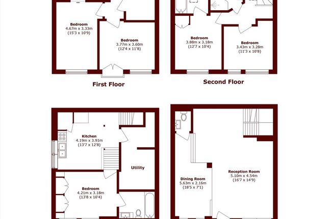 The property includes four well-sized bedrooms, a bright reception room, a separate dining area, and a fully fitted kitchen with a utility room. Wooden flooring throughout adds a contemporary touch, while ample storage ensures both comfort and practicality.
