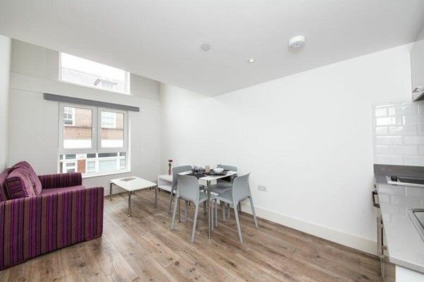 This bright and stylish apartment has been finished to a high standard and features a contemporary open-plan kitchen and reception room, a modern shower room, and a spacious double bedroom with built-in storage and study area. The property benefits from wood-effect flooring throughout, recessed lighting, and air conditioning, creating a comfortable and practical living environment.