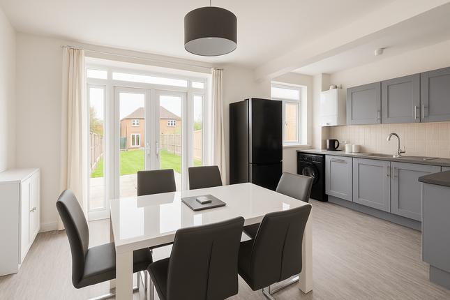 The ground floor features a bright and sociable open-plan layout, connecting the reception room with the newly updated kitchen. The living area includes a lovely feature fireplace and enjoys pleasant views over the rear garden, creating a welcoming space for relaxing or entertaining. The contemporary kitchen offers excellent natural light, a dedicated dining area, and the added convenience of a utility room. Its recent refurbishment gives it a stylish, fresh look that complements the practical layout.