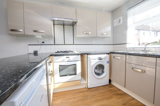 Doubel glazed window to front aspect and double glazed double doors to rear aspect, range of wall mounted and base cupboards with work surface over, intergrated oven and hob with extractor over, space for fridge freezer and washing machine, one and a half sink bowls with mixer tap and draingage, laminate flooring, radiator and wooden door through to