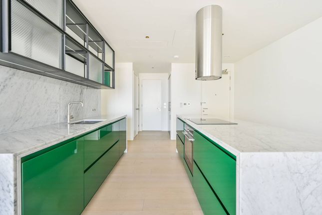 Contemporary open-plan living area with fully fitted kitchen