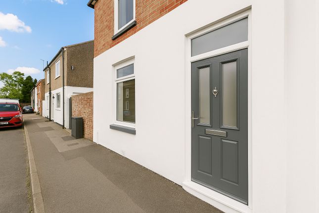 The modern kitchen has been fitted with spotlights, wooden base and wall units, dark blue cupboard doors, white counter tops and features an electric hob and oven. There is also room for an under counter washing machine and floor standing fridge freezer. The lounge diner also has spotlights fitted running the length and width of the room, with sliding patio doors leading out onto the freshly landscaped garden. The South facing, low maintenance garden comprises of paving slabs and shingle, with a raised flower bed and rear access at the bottom.