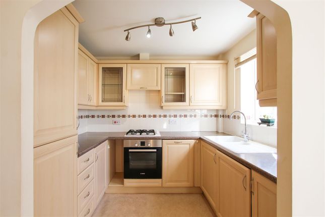 Base and wall units, work tops, sink with window to front aspect above and integrated appliances including oven, induction hob with extractor above, fridge freezer, slimline dishwasher and washer dryer.