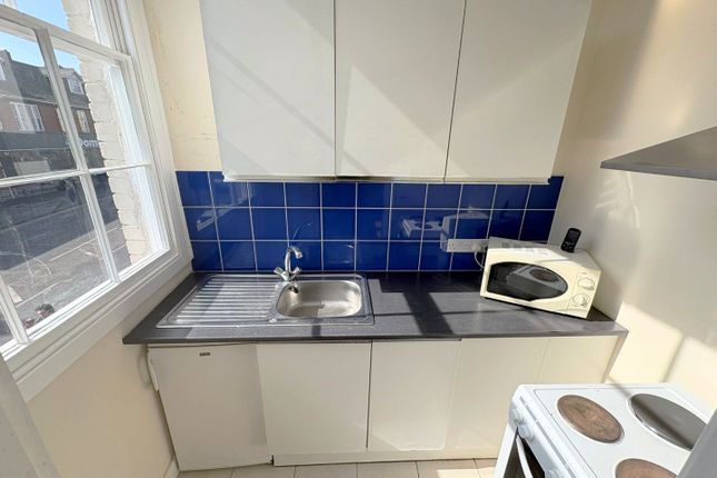 The property compromises from an open plan living / bedroom space, kitchen area with cooker, and spaces for washing machine or fridge. With extra tall ceilings and also full length bay window it is bathed in light. A separate shower room is also tucked away.