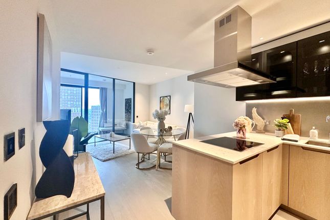 The property features a beautifully designed open-plan living and dining area, enhanced by large windows that fill the space with natural light. The contemporary kitchen is fully fitted with high-spec integrated appliances, sleek cabinetry, and premium finishes, ideal for both everyday living and entertaining.