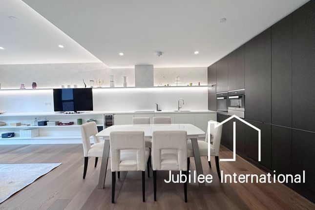 Positioned on the second floor and accessible via lift, the apartment opens into a bright and spacious reception room, ideal for both relaxing and entertaining, with direct access to a private terrace. A sleek, fully fitted modern kitchen complements the space, finished to a high standard with integrated appliances.