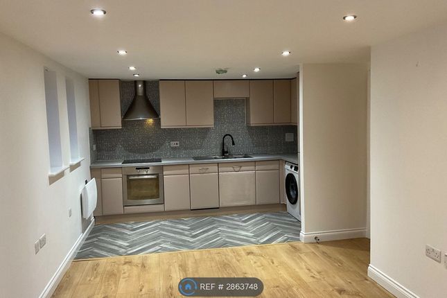 The flat features a large open plan kitchen and living area, creating an excellent space for both relaxing and entertaining. The kitchen is fitted with a range of contemporary units and comes equipped with a fridge freezer and washing machine, offering practicality for day to day living. The living area is flooded with natural light and benefits from patio doors which can be opened, adding to the sense of space and openness.