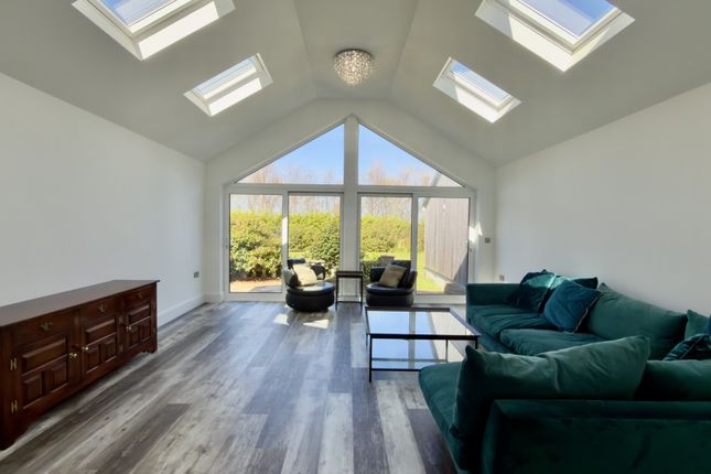 Sunny sitting room with valuated ceiling, Velux windows & sliding doors leading to the terrace & lawned garden