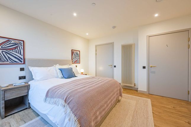 The apartment features a light-filled open-plan living area with a contemporary fitted kitchen, complete with integrated appliances and sleek cabinetry. The double bedroom is generously sized, offering a comfortable and practical living space, while the modern bathroom is finished with high-quality fittings and elegant tiling.