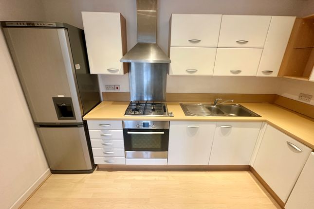 The property comprises two double bedrooms, which share a Jack and Jill bathroom accessible from both Bedroom One and the hallway. The lounge is a good size, providing a comfortable living area, while the fitted kitchen includes a washing machine and fridge freezer and offers space for a dining table.