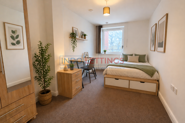 The apartment features a spacious open-plan living and kitchen area with engineered timber flooring, underfloor heating, comfort cooling, a porcelain breakfast bar, and full-height glazing that maximises natural light. The well-proportioned bedroom benefits from built-in wardrobe space, while the modern shower room is finished with high-quality fittings and porcelain tiling.