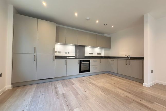 Two-bedroom, two-bathroom apartment offering far-reaching views and extending to 758 sq ft. The property features an open-plan kitchen with integrated appliances and a private balcony. Residents benefit from a 24-hour concierge service and on-site facilities.