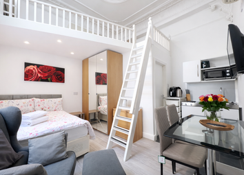 Fully furnished studio flat in South Kensington (SW7) featuring high ceilings, mezzanine level, private ensuite, and air ...